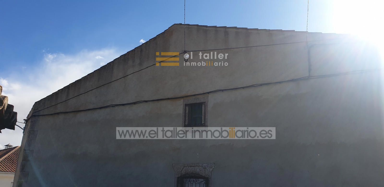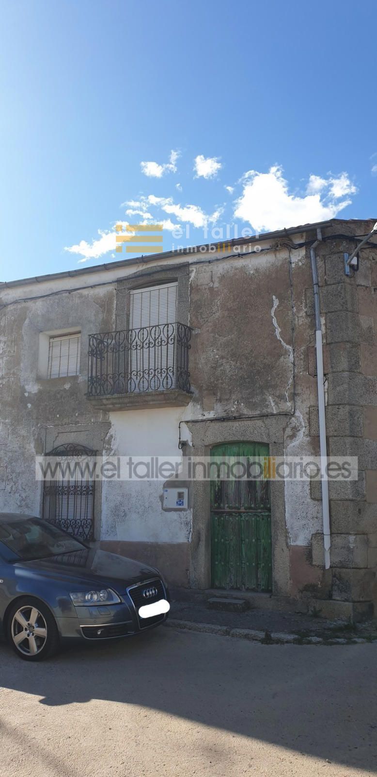Es una casa antigua con fachada a tres calles, de dos plantas, con el tejado arreglado, y está ubicada en el centro del pueblo, frente a la iglesia.